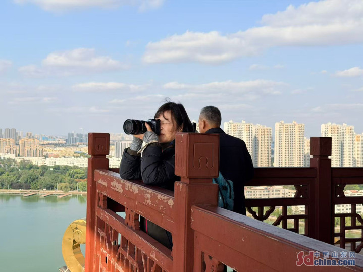 随后,摄影师们登上黄河楼。作为黄河下游第一楼,这座高79.1米的塔楼以“黄河明珠·智者智城”为主题,通过声光电等现代展陈手段,生动展现了滨州与黄河相依相生的城市故事。登楼远眺,黄河壮景尽收眼底,成为摄影师们争相捕捉的焦点。