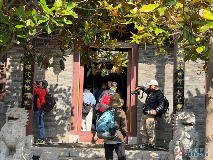 摄影团首先抵达杜受田故居,这座典型的明清鲁北建筑群,是清朝咸丰皇帝老师杜受田及杜家多位名臣的旧居。故居内院落相连、廊道相通,建筑风格朴实无华,却蕴含着杜家“谦虚正直、爱国恤民”的家风传承。越南摄影师潘青宇说:“这里的古宅建筑保留着浓厚的清代风格,整体格局庄重典雅。更为特别的是,让我了解到杜受田不仅是清朝著名的大臣,还是咸丰皇帝的老师,被后人尊称为“帝师”。这次参观让我更加深刻地感受到滨州这片土地深厚的文化底蕴与悠久的历史传承。”